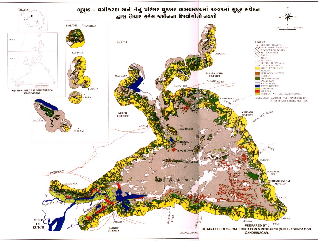 Little Rann of Kutch where more than 6000 families reside every year for 8 months, is 5000 sq. km wide mud desert but treated as Survey no ZERO. It is also Wild ass Sanctuary.