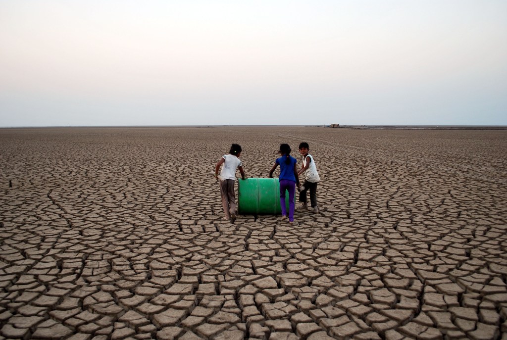 Cracked mudflat spread over 5000 sq. km. Agariyas reside scattered and use around 2.3% of the total Rann area for traditional salt farming.